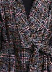 Fashion trendy plus size women coats gray plaid tie waist pockets wool coat - SooLinen