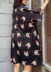 Französisches Stehkragen-Outfit Fotografie schwarze Kleider mit Kätzchenmuster