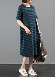 Italienisches grün gestreiftes Outfit O-Ausschnitt Cinched A-Linie Sommerkleider
