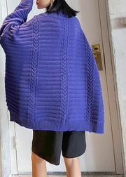 Oversized blue Sweater Blouse high neck thick casual knit sweat tops - SooLinen