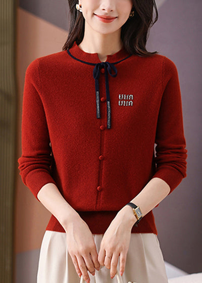 Simple Red Button Thick Solid Woolen Sweater Long Sleeve