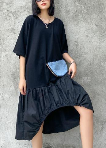 Stil schwarzes Kleid O-Ausschnitt Tunika mit Reißverschluss Kleider