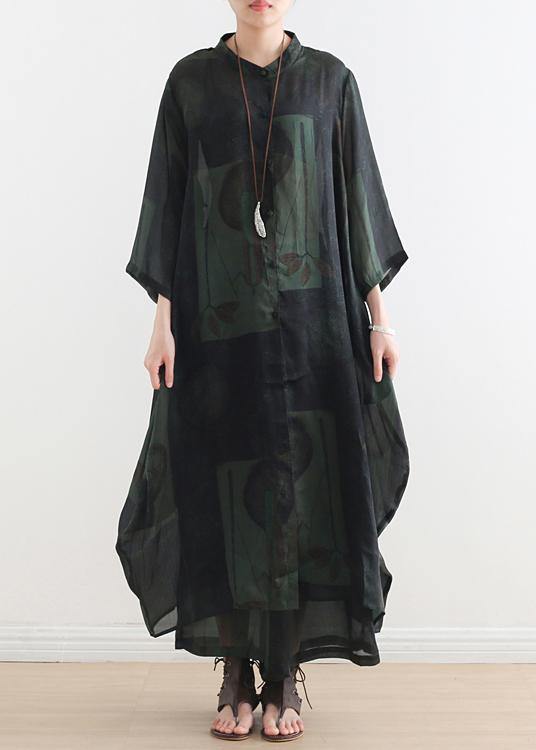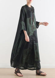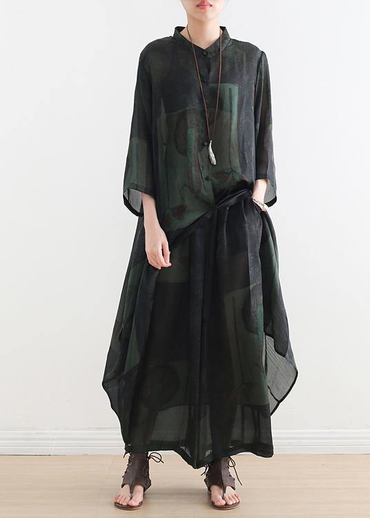 Sommer neuer grüner Druckanzug lange Seidenhose mit weitem Bein zweiteiliger Anzug