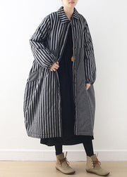 Damen Oversize Winterjacke POLO Kragen Oberbekleidung grau gestreifter Patchwork dicker Damen Parka