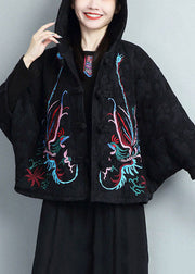 Casual Black Embroideried Warm Fleece Coats And Pants Skirts Two Pieces Set Batwing Sleeve
