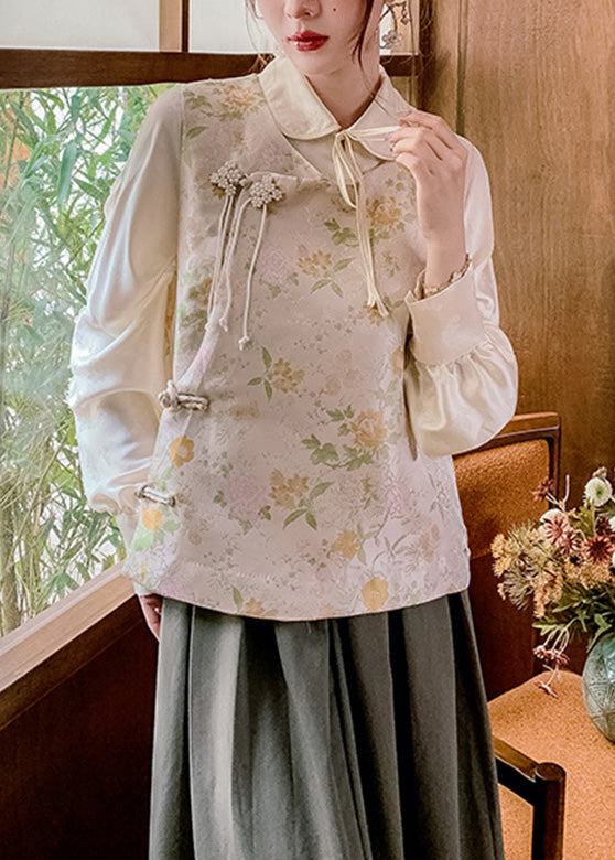 Cute O-Neck Print Neck Tie Button Waistcoat Spring