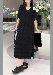 Black Wrinkled Vacation Chiffon Long Dresses Summer