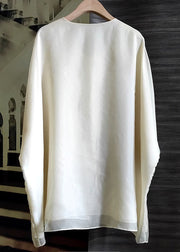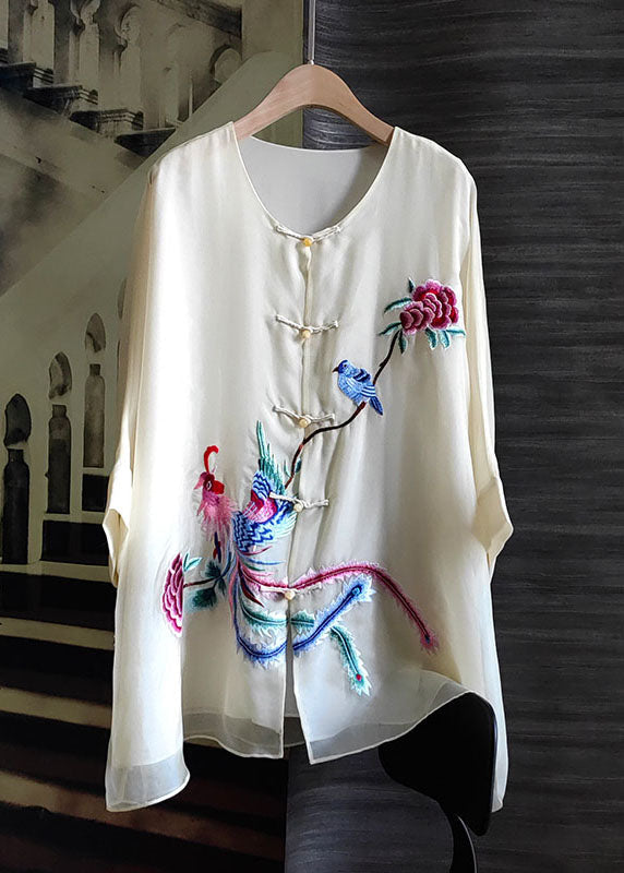 White Patchwork Silk Tops Embroideried Chinese Button Long Sleeve