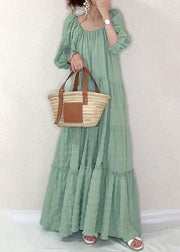 Solid Square Collar Ruffle Casual Maxi Dress Light Green