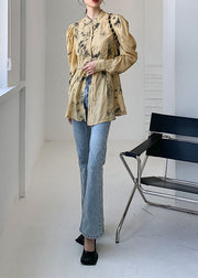 Italian Khaki Stand Collar Tie Dye Cotton Shirts Top Spring
