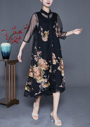 French Golden Floral Embroideried Hollow Out Tulle Two Piece Set Summer