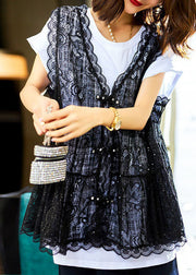 Chic White O-Neck Lace Patchwork Cotton T Shirt Two Pieces Set Summer