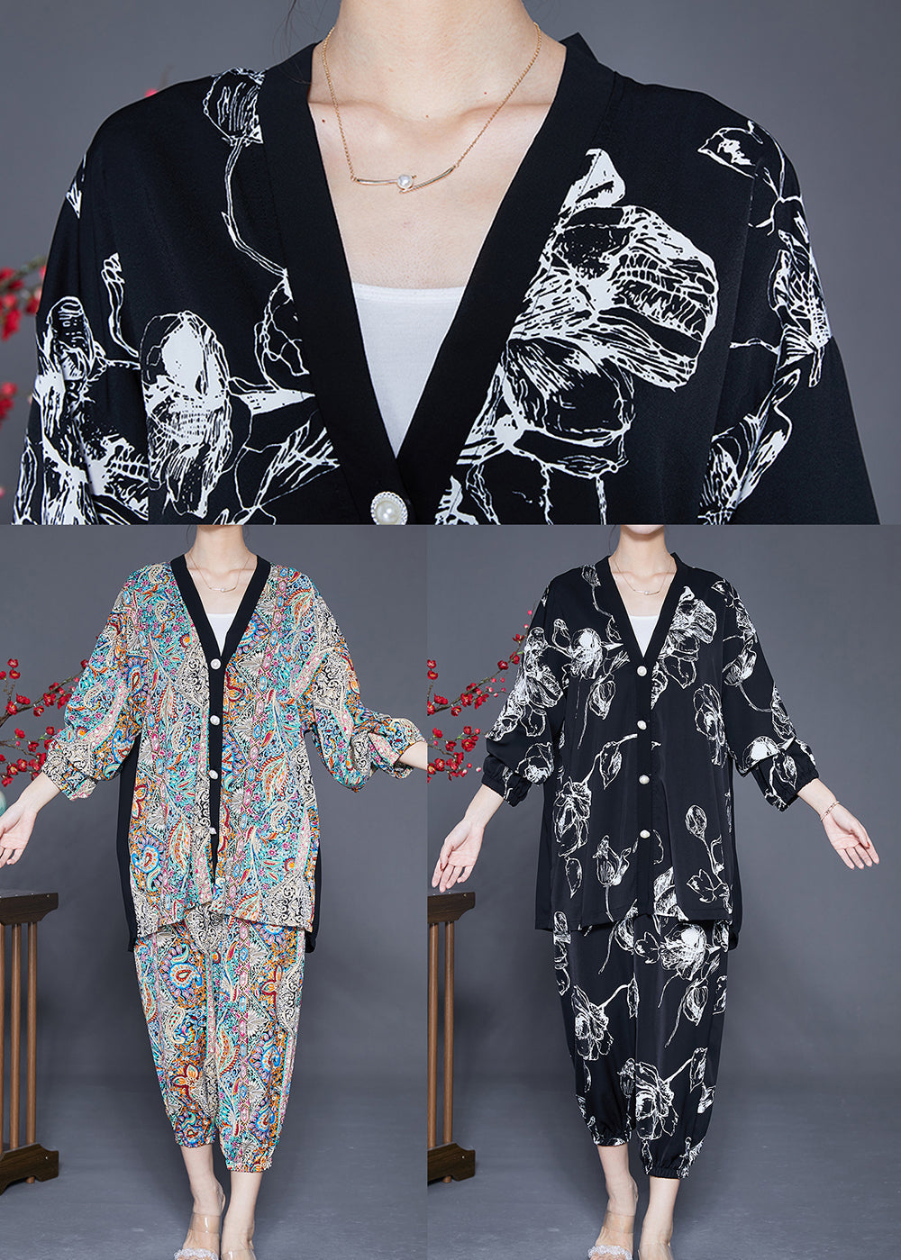 Fine Beige Oversized Patchwork Print Chiffon Two Pieces Set Summer