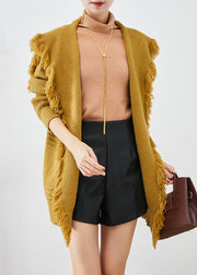 Modern Yellow Sailor Collar Tasseled Knit Cardigan Fall