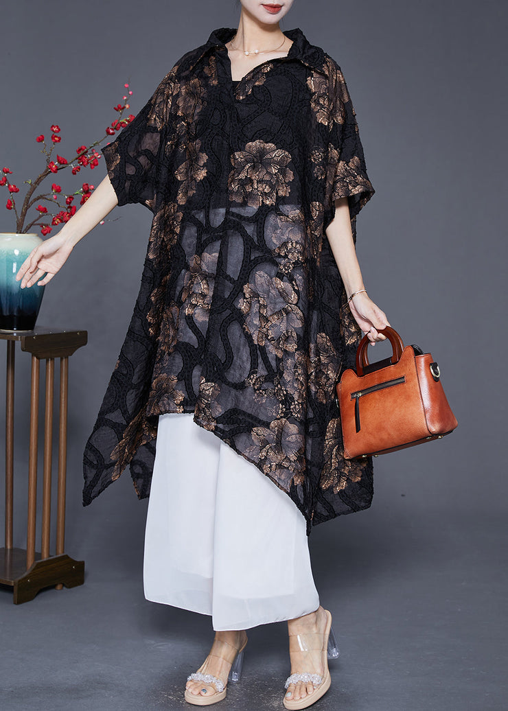 Art Black Oversized Asymmetrical Print Silk Long Smock Summer