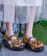 Handmade Retro Cowhide Leather Sandals Splicing Floral