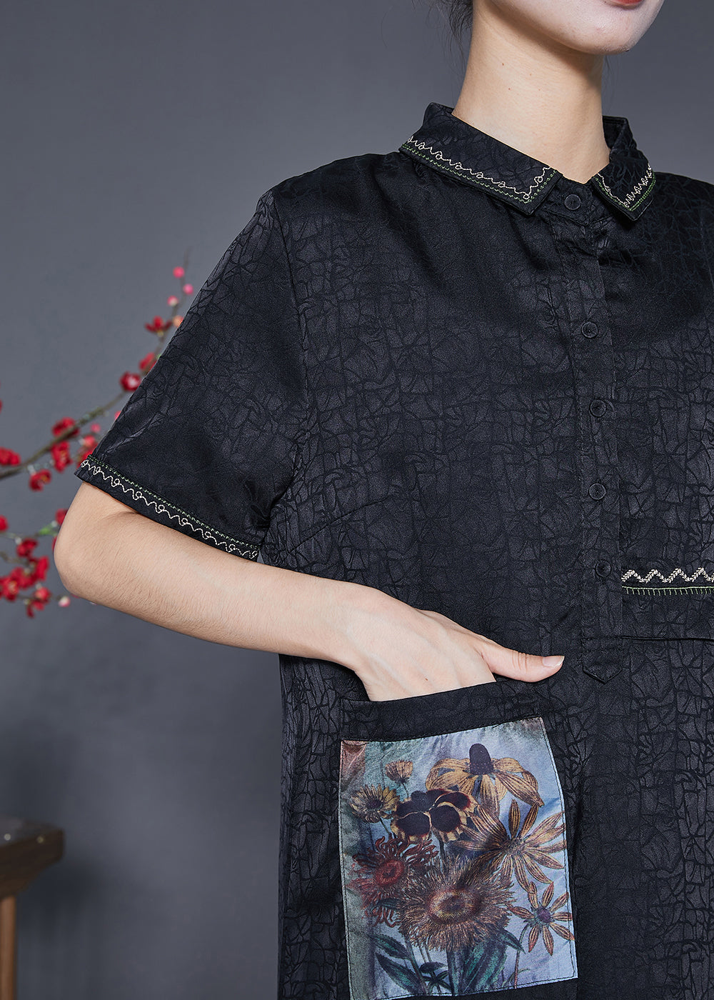 Slim Fit Black Embroideried Applique Silk Dresses Summer