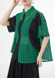 Boutique Green Peter Pan Collar Hollow Out Patchwork Lace Shirt Summer