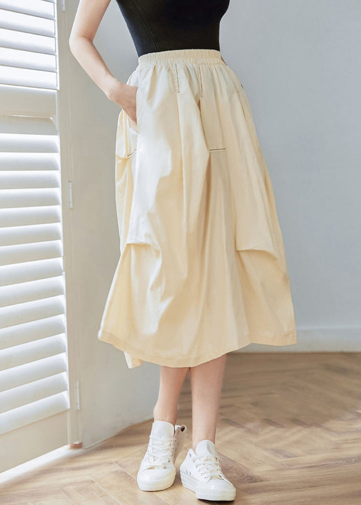 Apricot Asymmetrical Patchwork Cotton Skirt High Waist