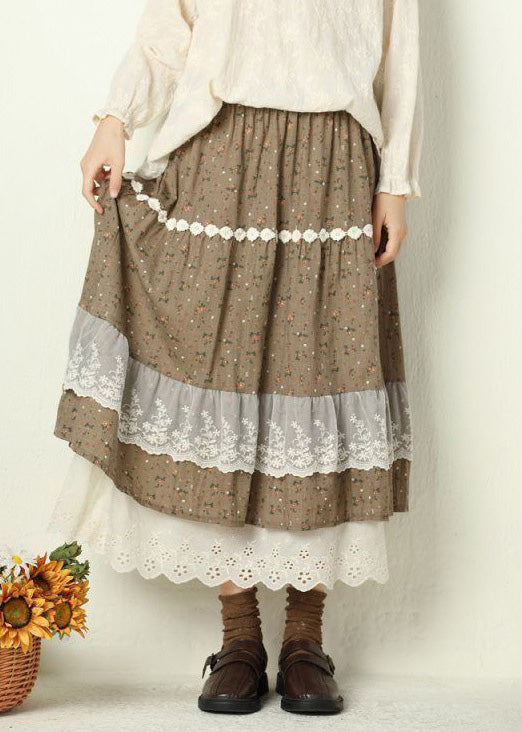 Beautiful Navy Print Lace Elastic Waist Cotton Skirt Spring