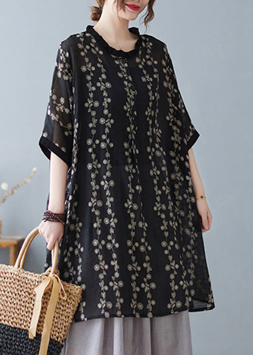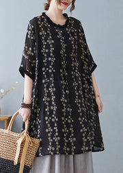 Black Side Open Thin Cotton T Shirt O Neck Half Sleeve