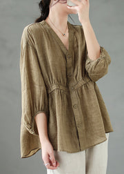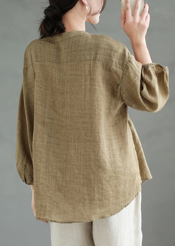 Loose Coffee Solid Button Linen Shirt Bracelet Sleeve