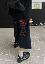 New Navy Print Pockets Denim Men Crop Pants Summer