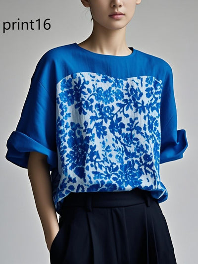 Unique Floral3 Asymmetrical Design Side Open Cotton Long Shirts Spring