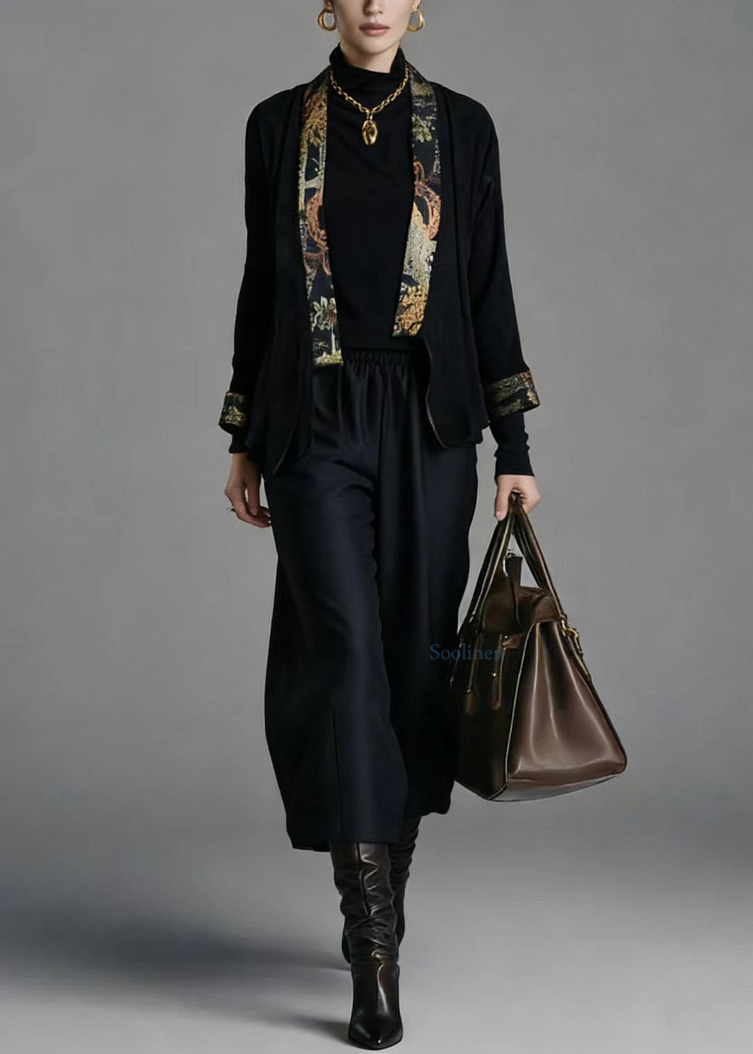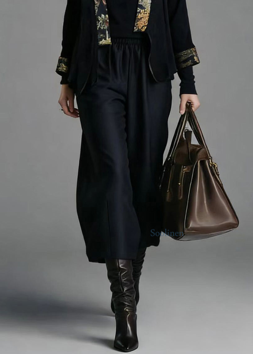 Chinese Style Cardigans And Wide Leg Pants Silk Two Pieces Set Spring
