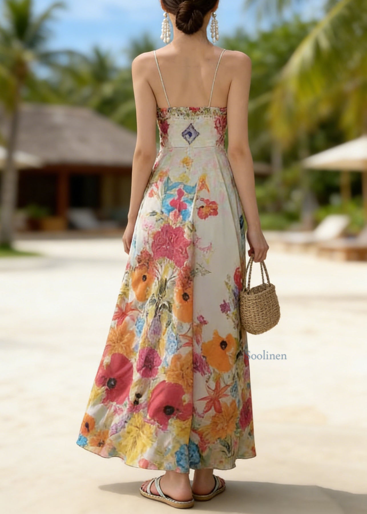 Boutique Print Chiffon Holiday Spaghetti Strap Dress Summer