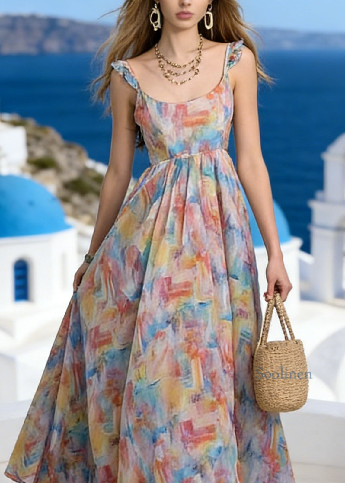 Stylish Ruffled Print Patchwork Chiffon Summer Dress