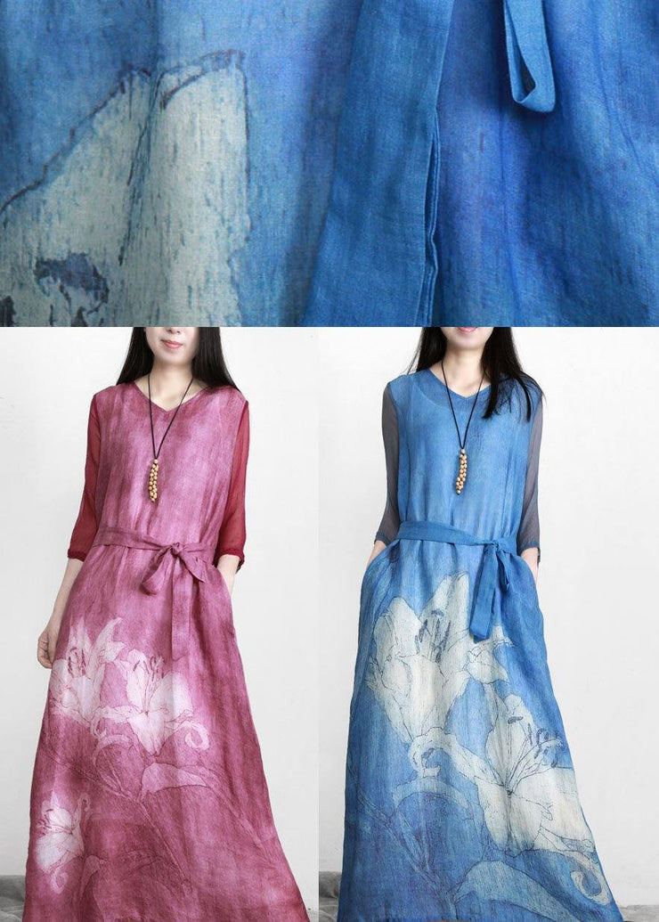 Art Blue Print Linen Tunic Patchwork Dress - SooLinen