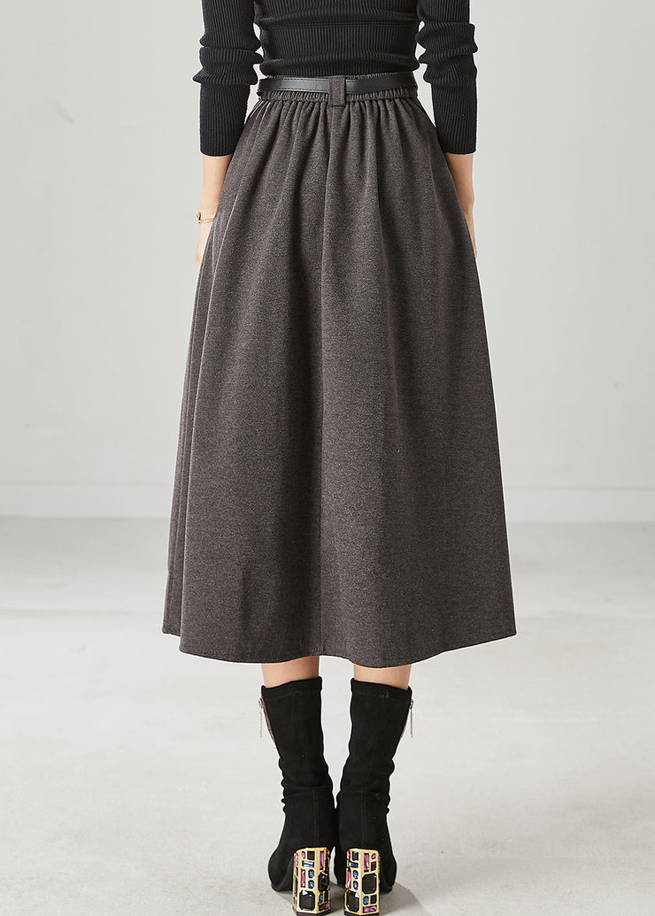Boutique Grey Elastic Waist Cotton Pleated Skirt Spring