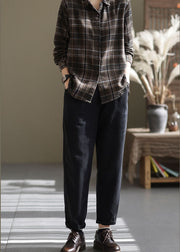 Black Cotton denim Pants button Cinched Spring