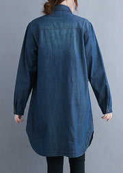 Classy Blue Peter Pan Collar Pockets Denim Coats Long Sleeve
