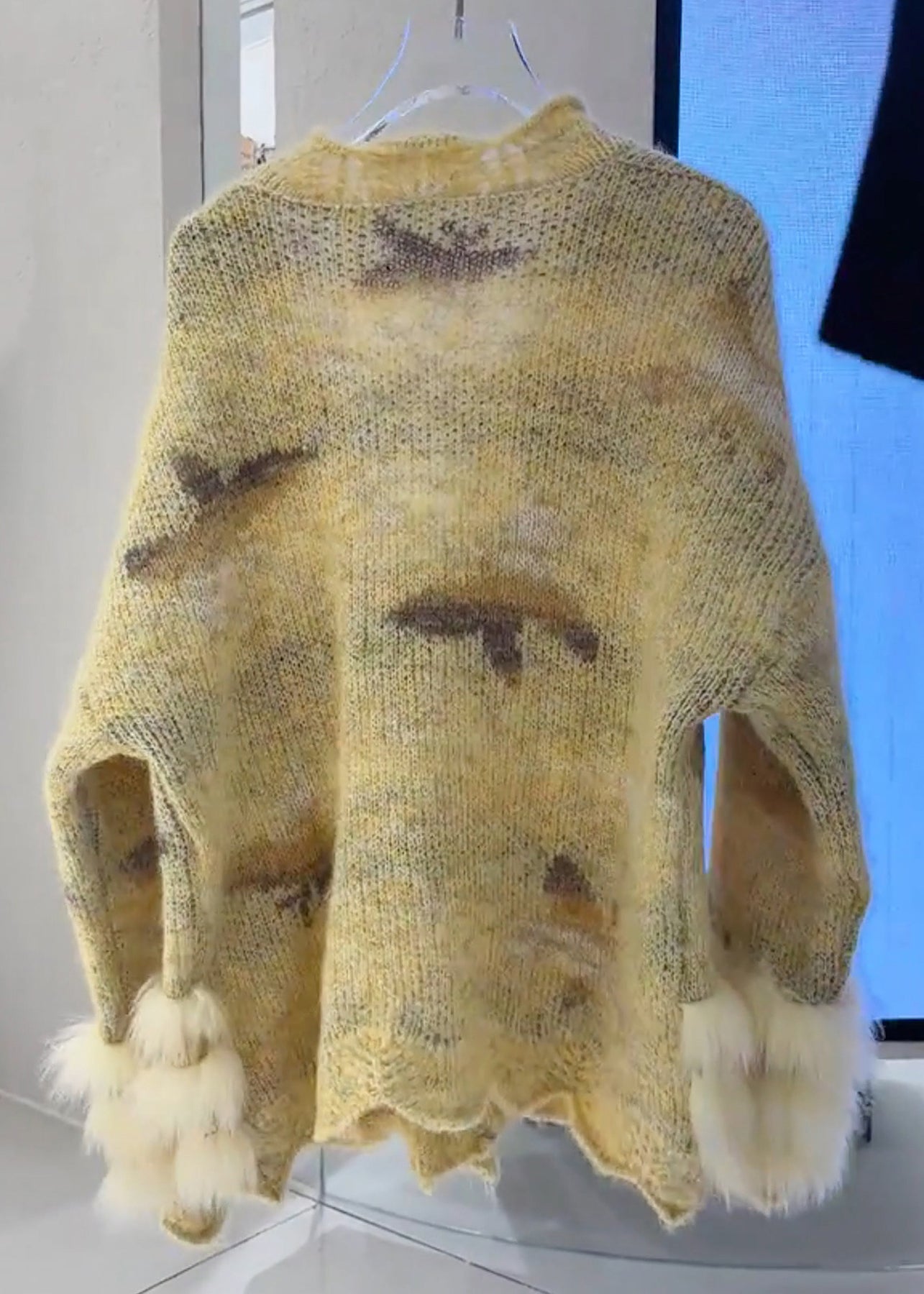 Casual Yellow Floral Fur Cotton Knit Cardigans Fall