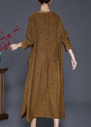 Fine Yellow Embroidered Wrinkled Silk Long Dress Fall