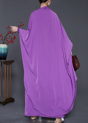 French Purple Oversized Draping Silk Two Piece Set Batwing Sleeve