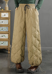 Women Black Plaid Drawstring Tie Waist Duck Down Filled Pants Winter