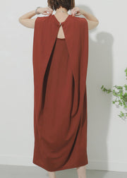 Natural Mulberry O-Neck Solid Maxi Dress Summer
