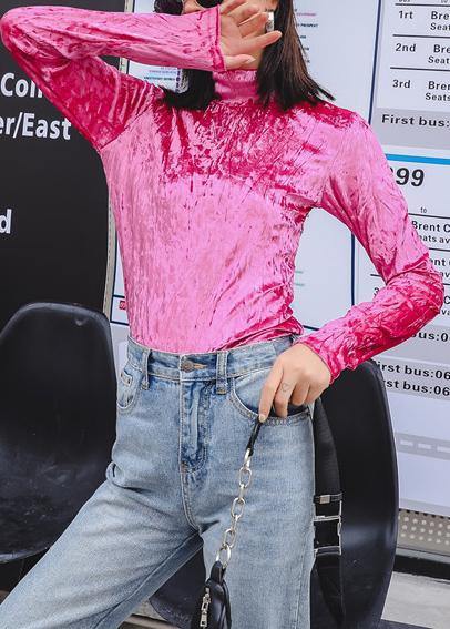 Loose fall cotton high neck shirts women pullover rose tops