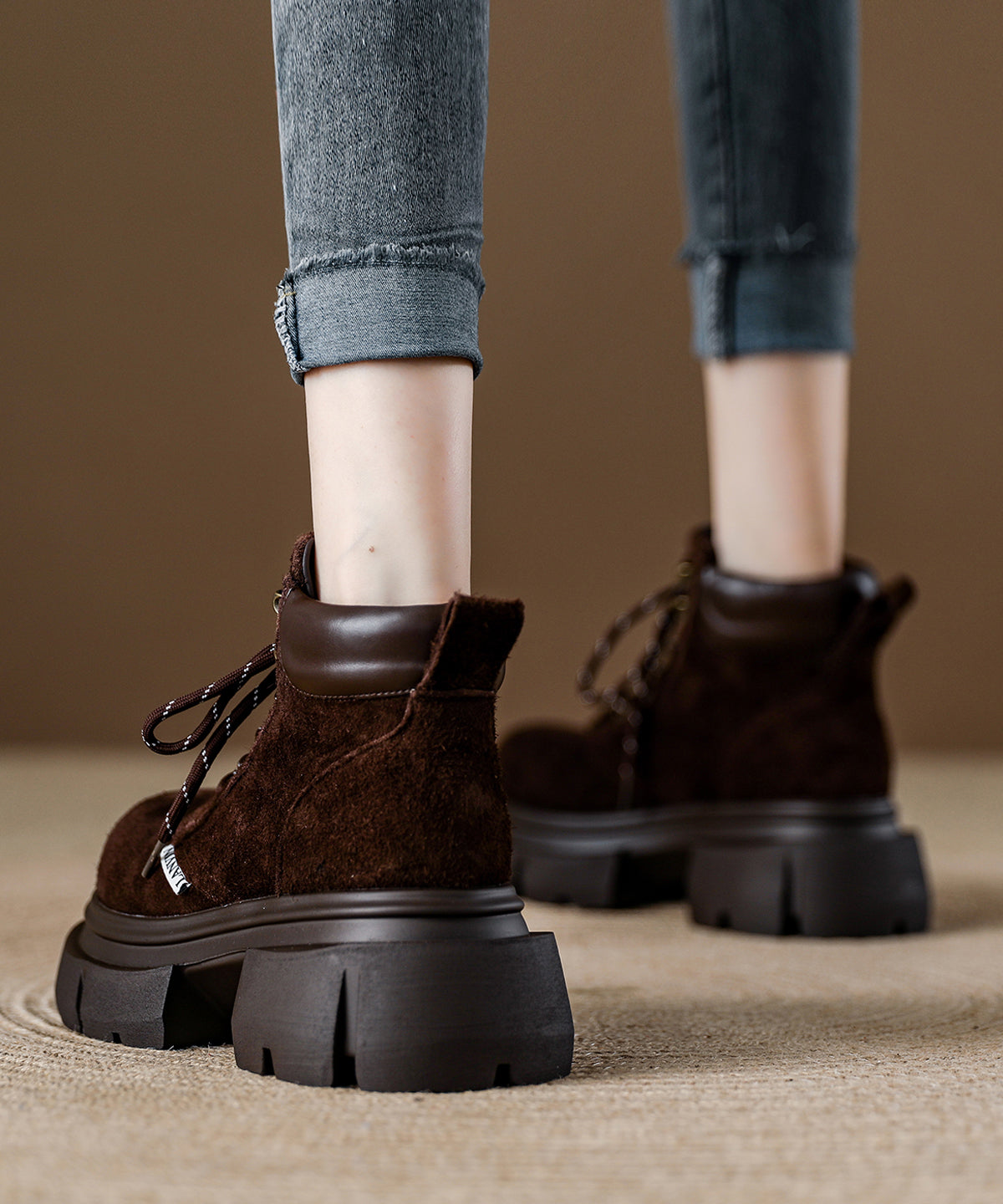 Camel Platform Suede Comfy Splicing Lace Up Boots