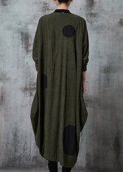 Blackish Green Dot Cotton Trench Coat Asymmetrical Spring
