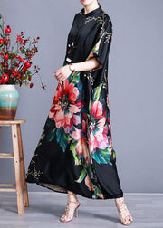 Luxy Black Silk Dress Long Batwing Sleeve Maxi Dresses Caftan