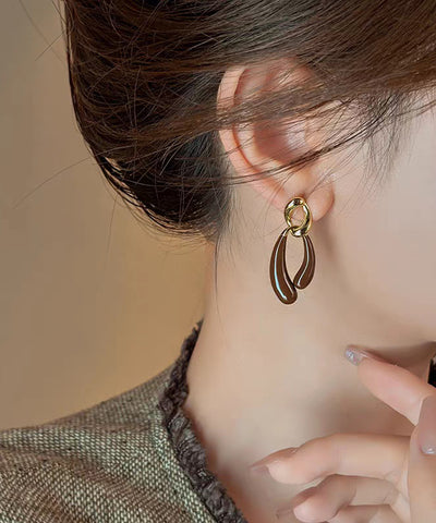 Bohemian Coffee Copper Alloy Asymmetrical Drip Glaze Drop Earrings