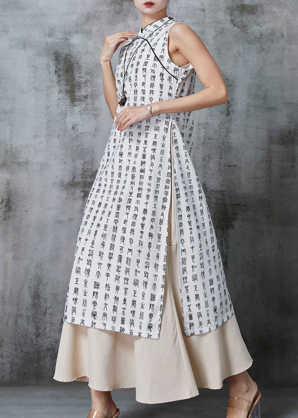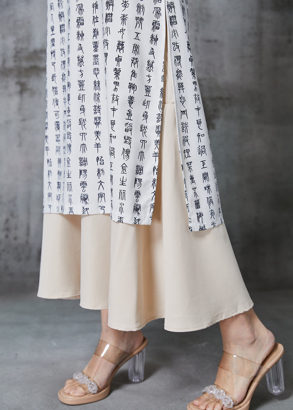 Chic White Print Cotton Oriental Two Piece Set Women Clothing Summer