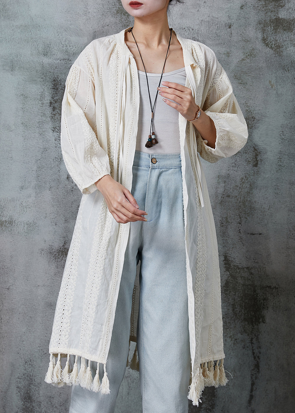 Italian Apricot Tasseled Embroidered Cotton Dress Spring