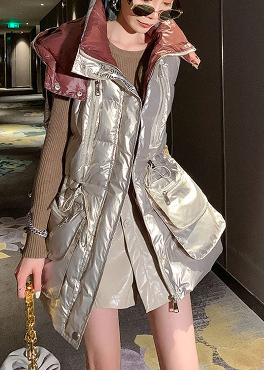Casual Light gold U Neck drawstring Bow Winter Sleeveless Puffer Vest