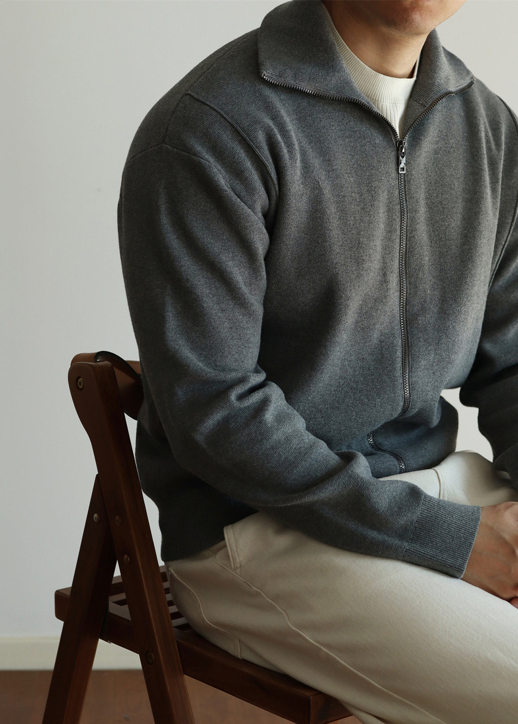 Loose Grey Stand Collar Zip Up Knit Men Coat Fall