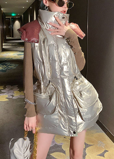 Simple Apricot hooded Pockets Casual Winter Sleeveless down vest